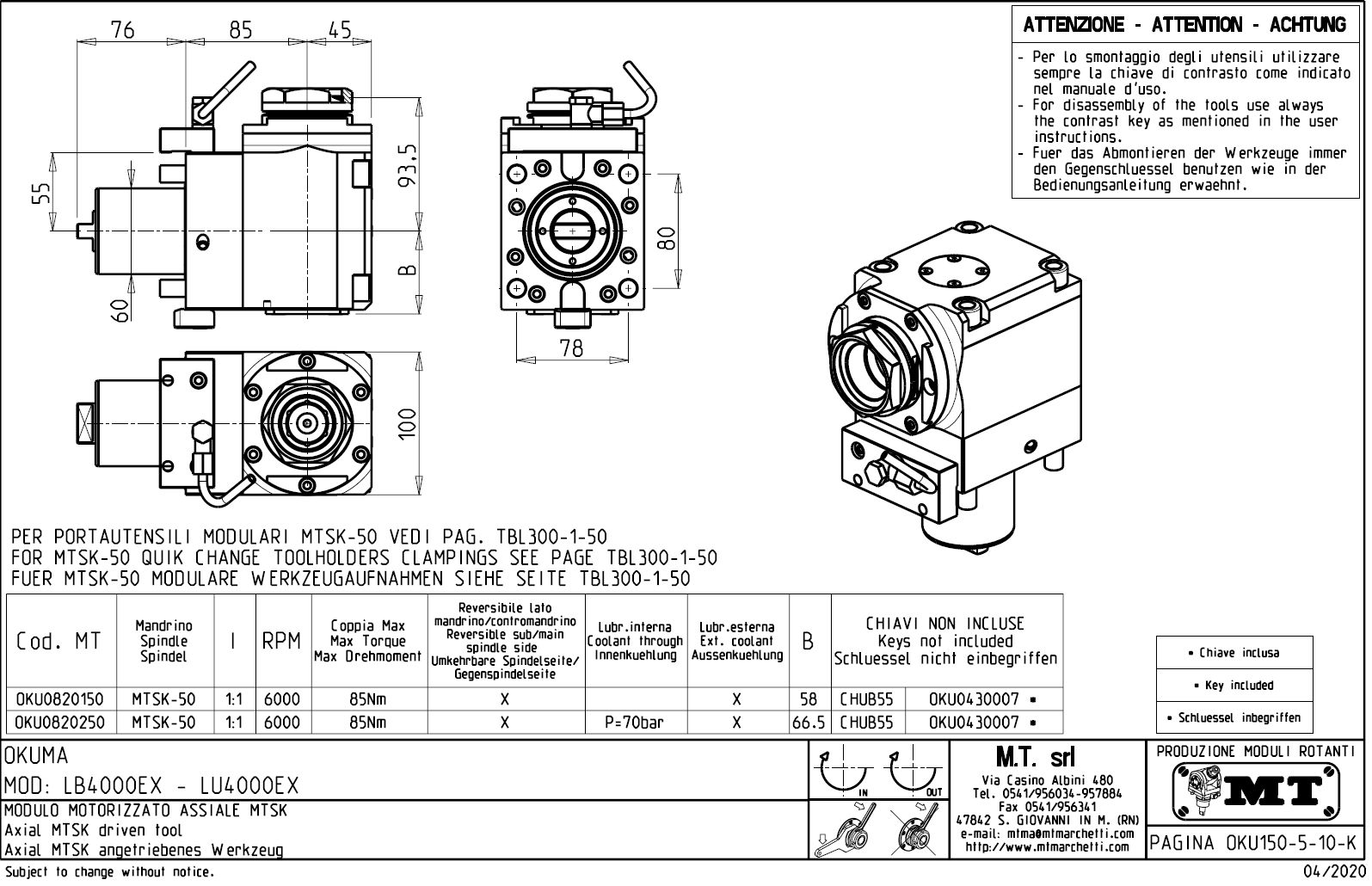 - upnutí nástroje pomocí: rychlovýměnného modulárního systému MTSK.