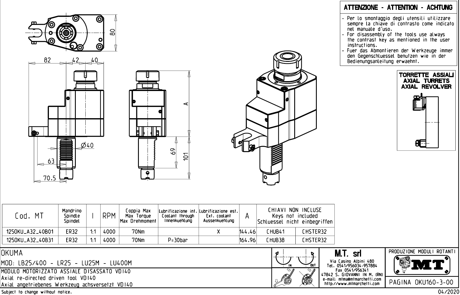 - vnitřní (max.30bar) a venkovní přívod řezné kapaliny.