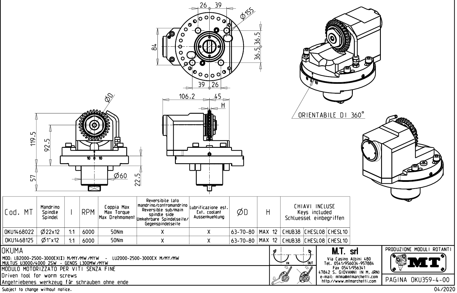 - Okuma - série LB 2000 / 2500 / 3000 EX (I) M / MY / MW / MYW