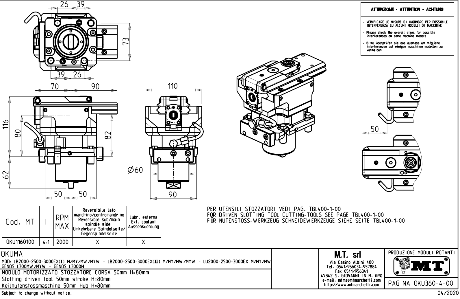- Okuma - série LB 2000 / 2500 / 3000 EX (II) M / MY / MW / MYW