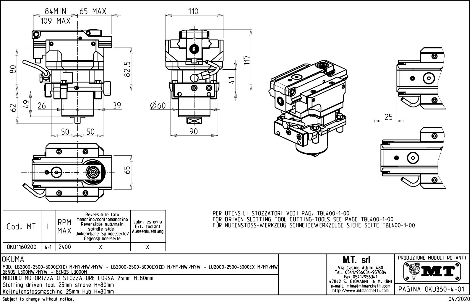 - Okuma - série LB 2000 / 2500 / 3000 EX (II) M / MY / MW / MYW