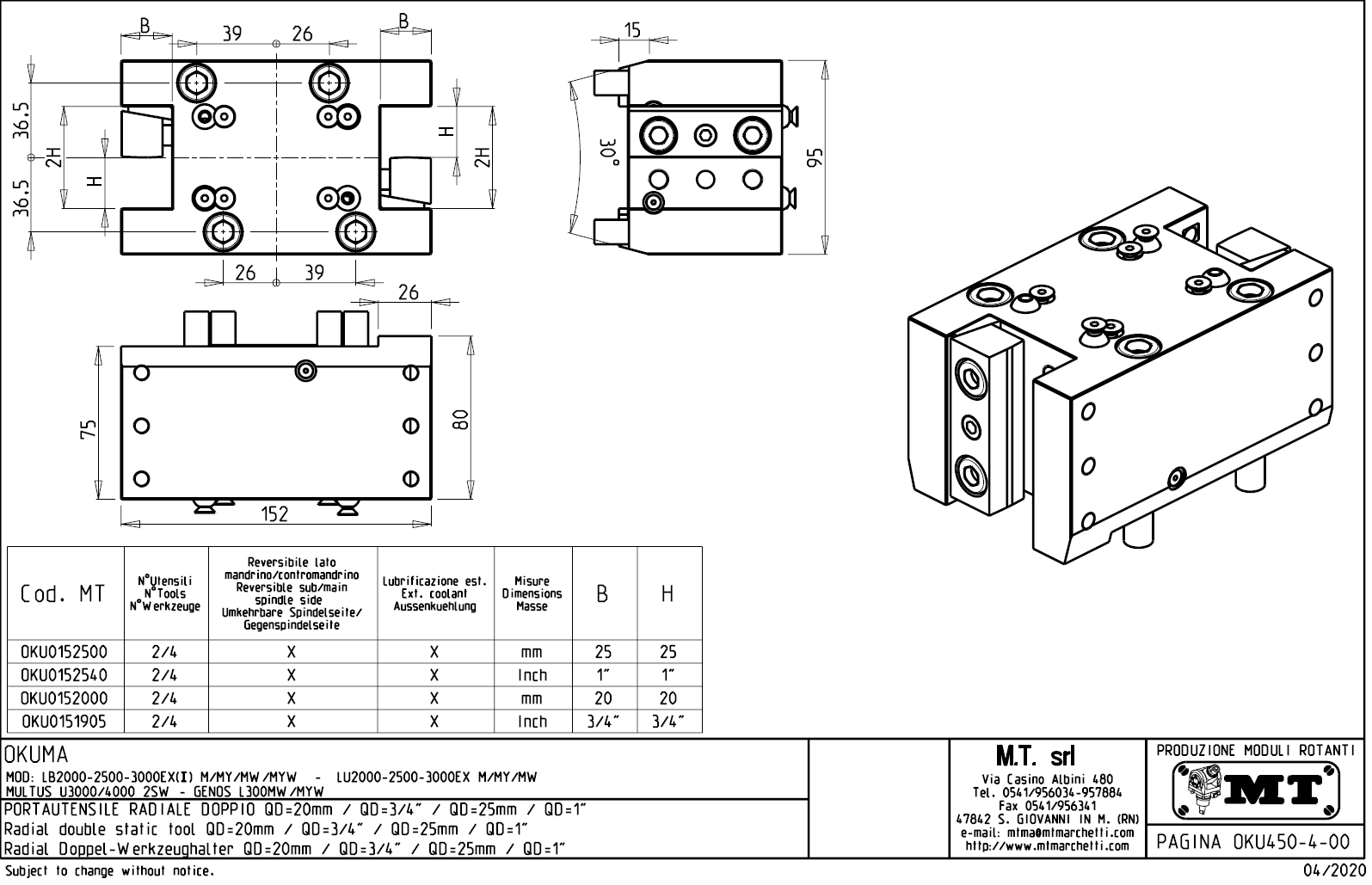 - Okuma - série LB 2000 / 2500 / 3000 EX (I) M / MY / MW / MYW