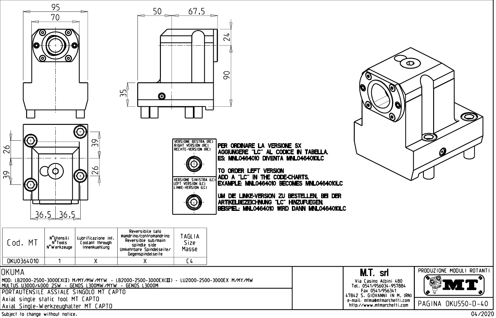 - Okuma - série LB 2000 / 2500 / 3000 EX (I) M / MY / MW / MYW