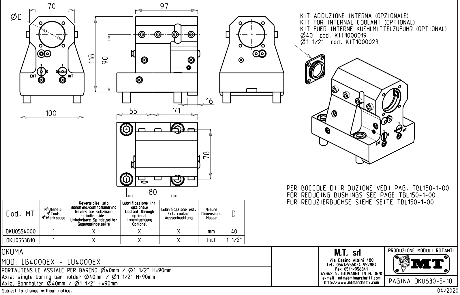 • pro použití vnitřního přívodu chladící kapaliny musí být použit zaslepovací kit, který není součástí standadní dodávky.