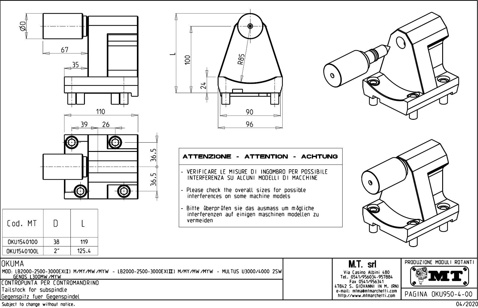 - Okuma - série LB 2000 / 2500 / 3000 EX (I) M / MY / MW / MYW