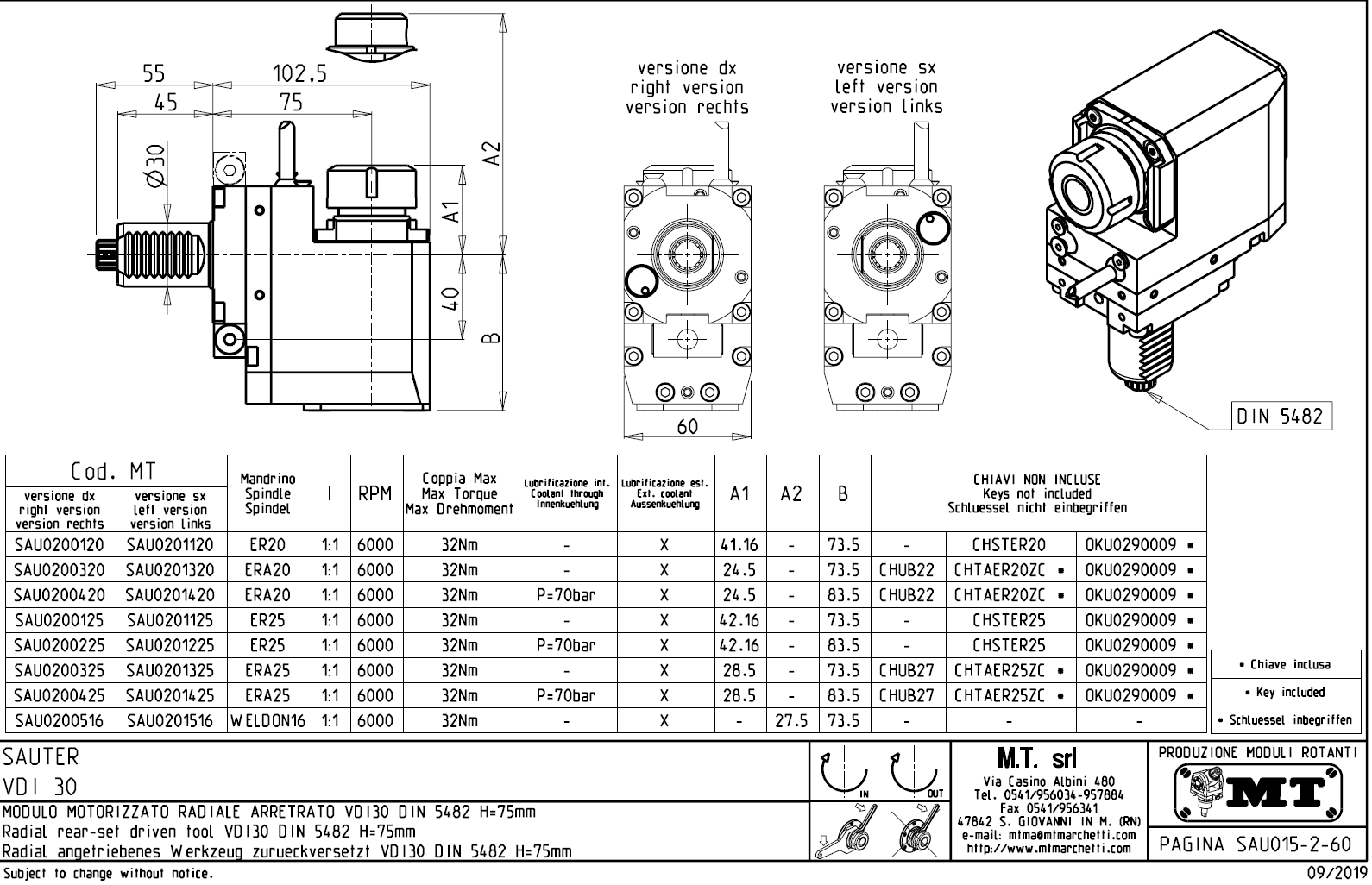 - vnitřní (max.70bar) a venkovní přívod řezné kapaliny.