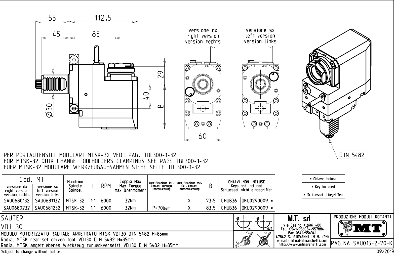 Radiální rotační držák nástrojů pro stroje Sauter s nástrojovou hlavou VDI30.