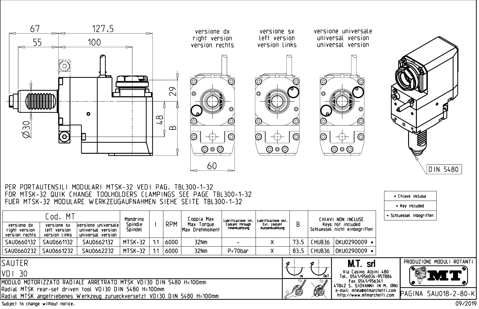 Radiální rotační držák nástrojů pro stroje Sauter s nástrojovou hlavou VDI30.