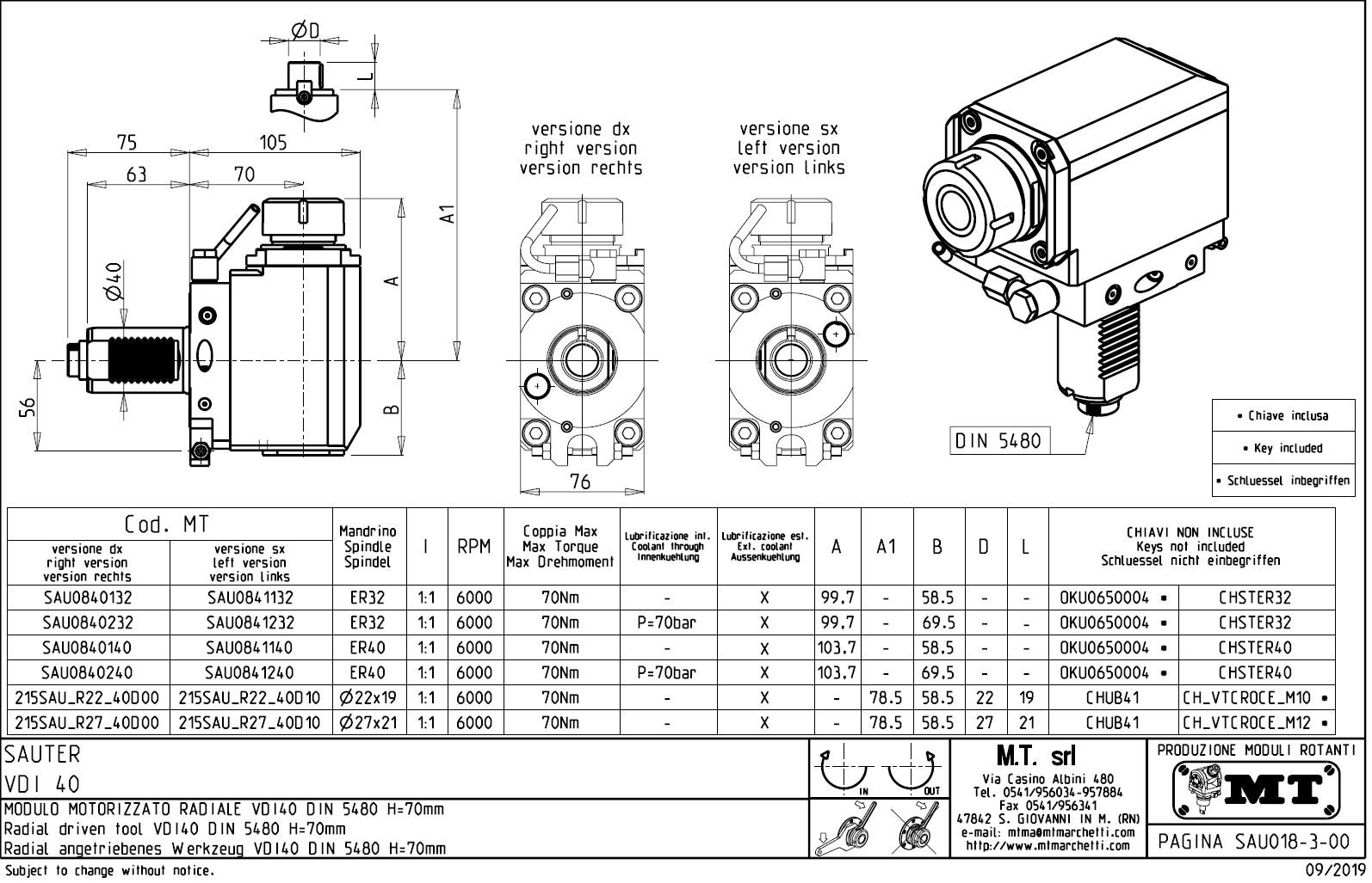 Radální rotační držák nástrojů pro stroje Sauter s nástrojovou hlavou VDI40.