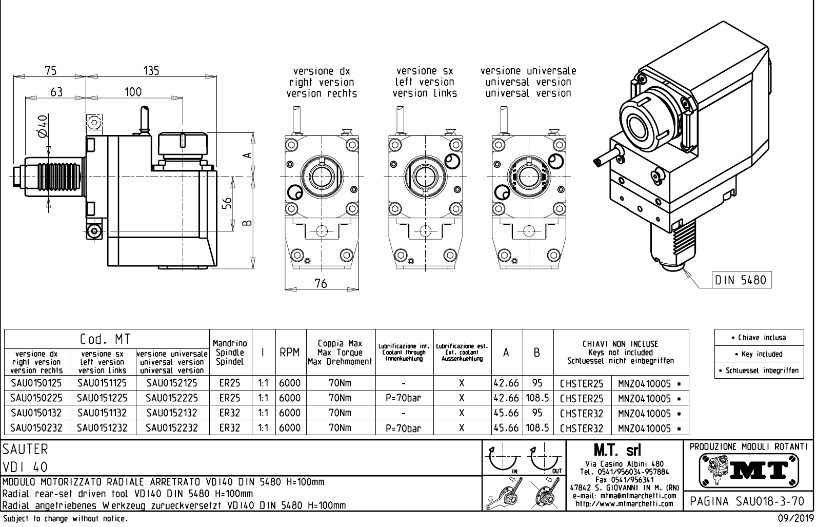 - vnitřní (max.70bar) a venkovní přívod řezné kapaliny.
