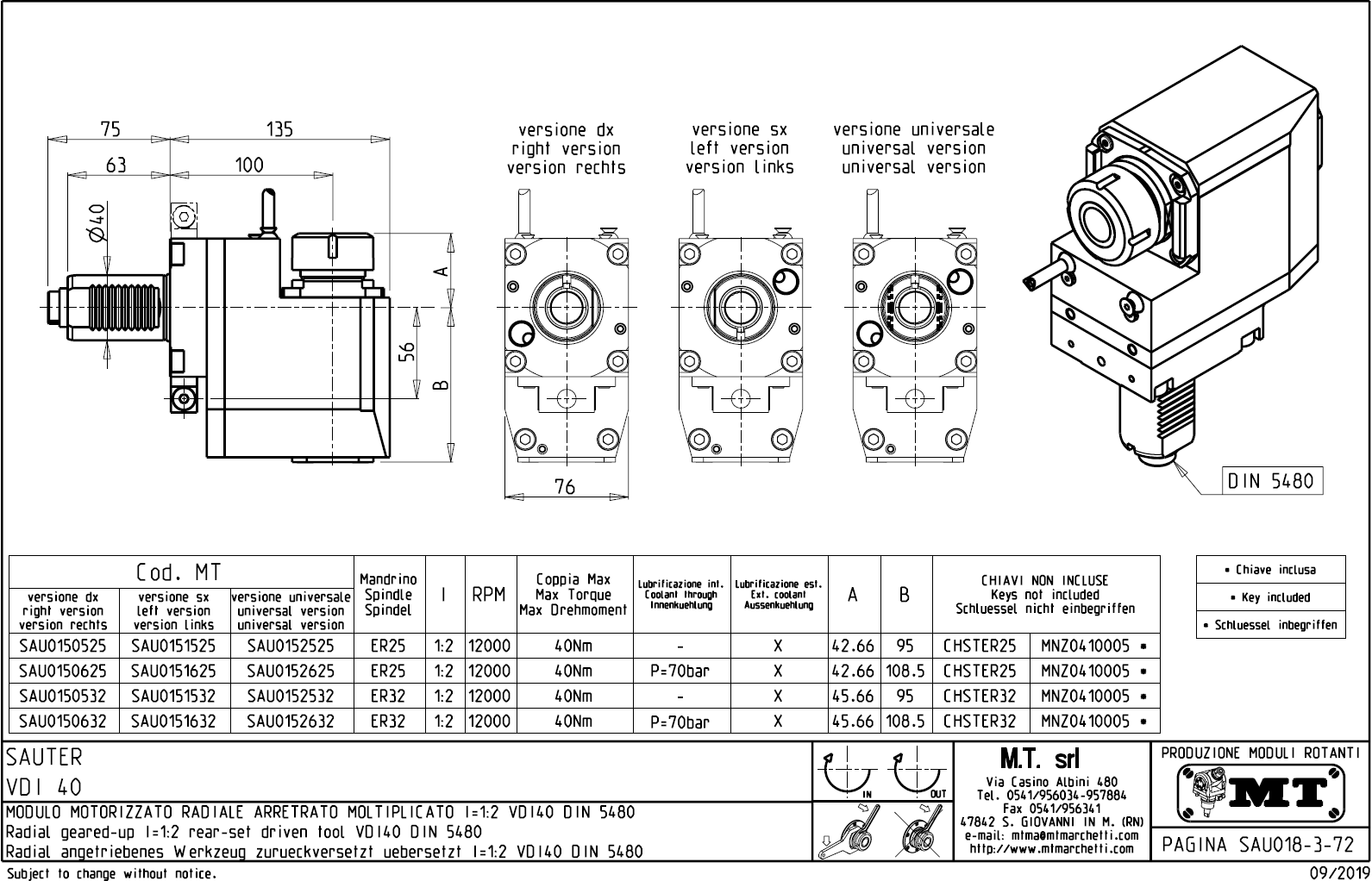 - vnitřní (max.70bar) a venkovní přívod řezné kapaliny.