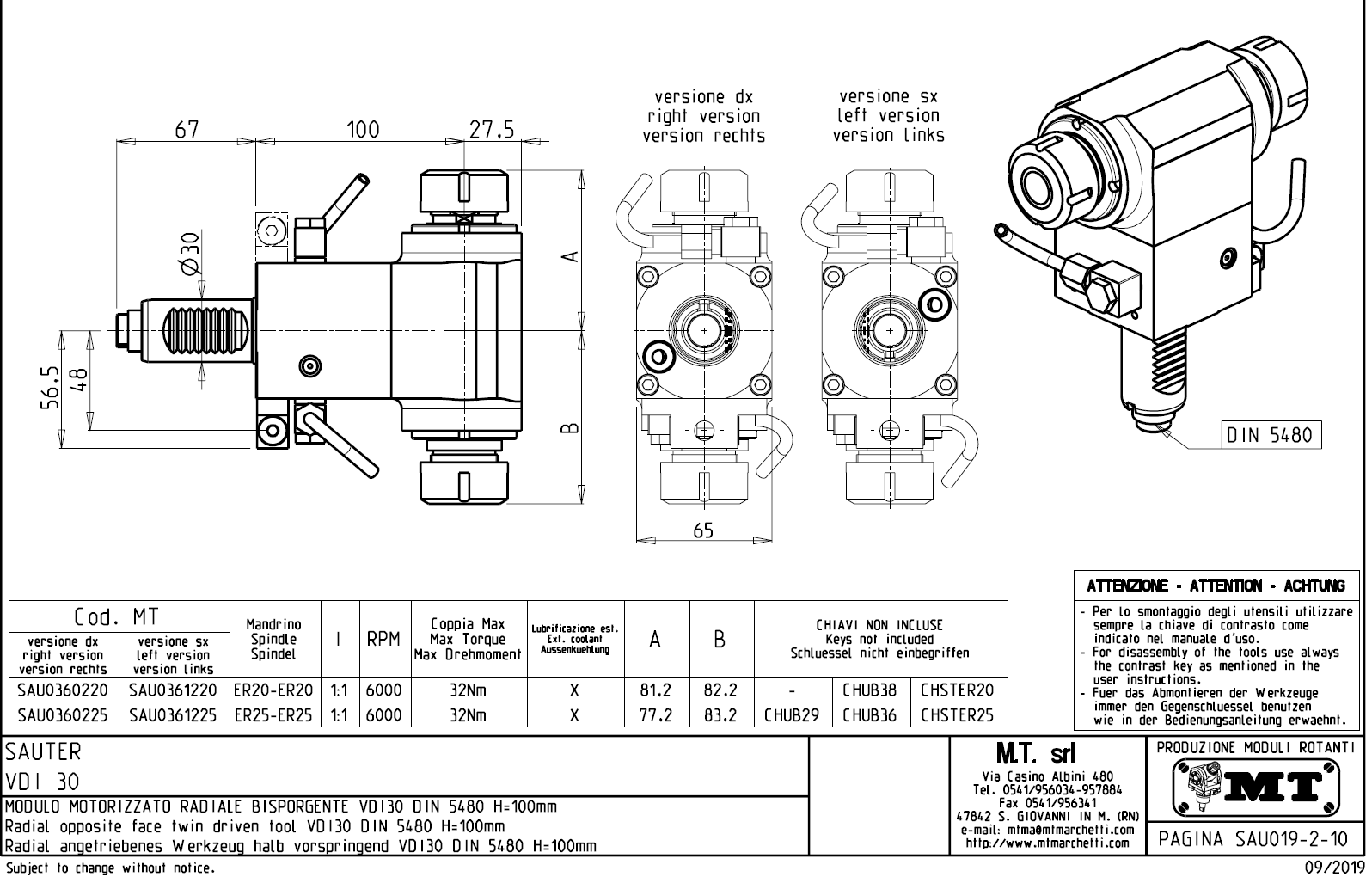 Radiální rotační držák nástrojů pro stroje Sauter s nástrojovou hlavou VDI30.