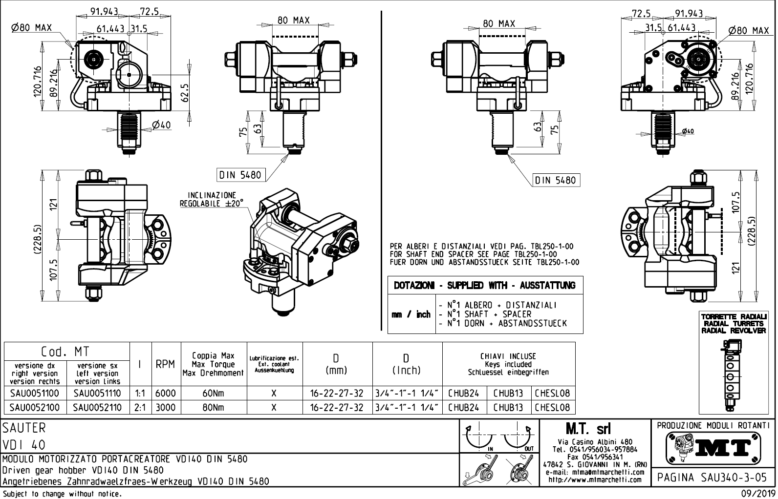 Rotační držák nástrojů pro frézování ozubení stroje Sauter s nástrojovou hlavou VDI40.
