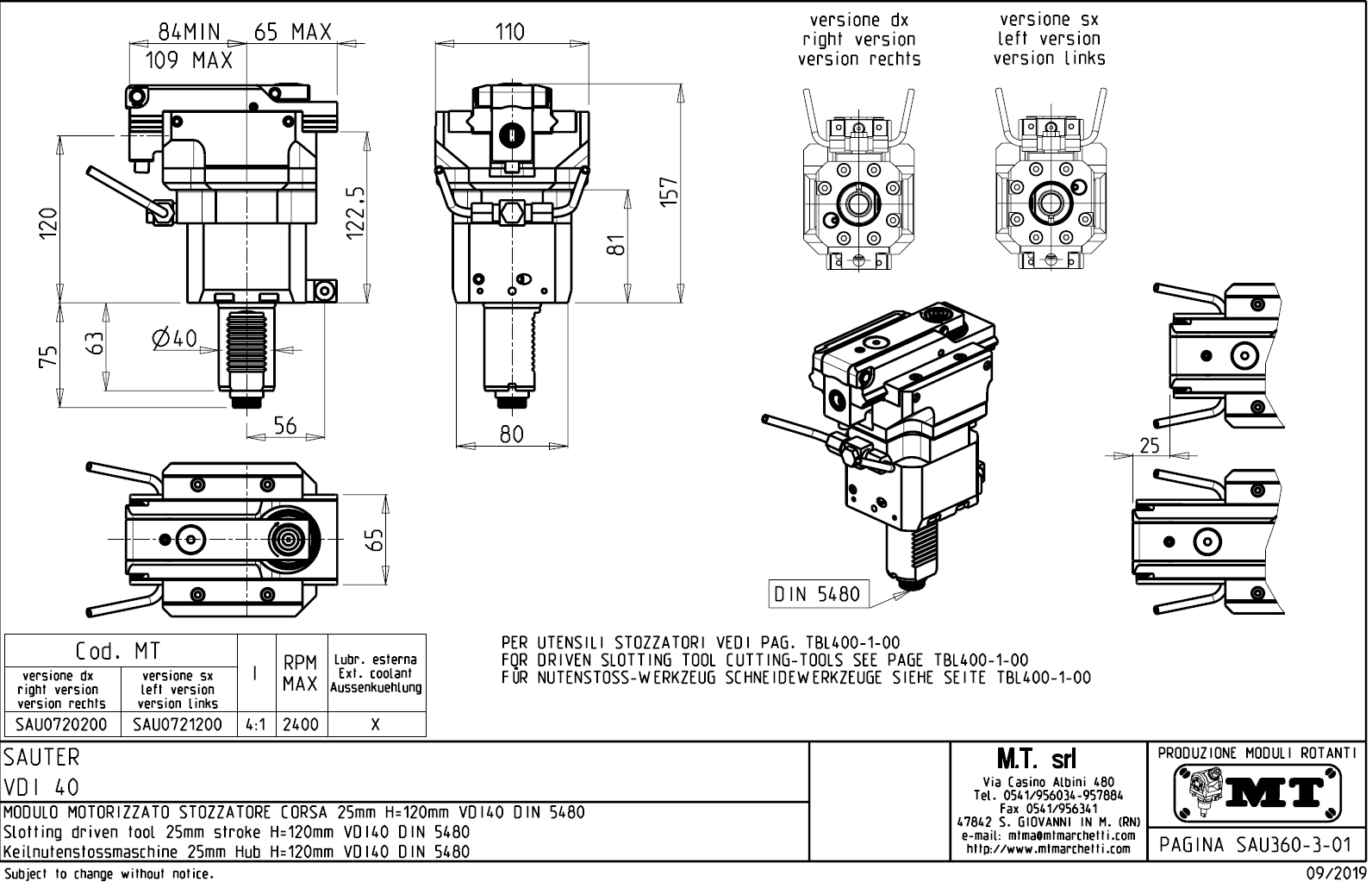 Rotační držák nástrojů pro obrábění drážek pro stroje Sauter s nástrojovou hlavou VDI40.