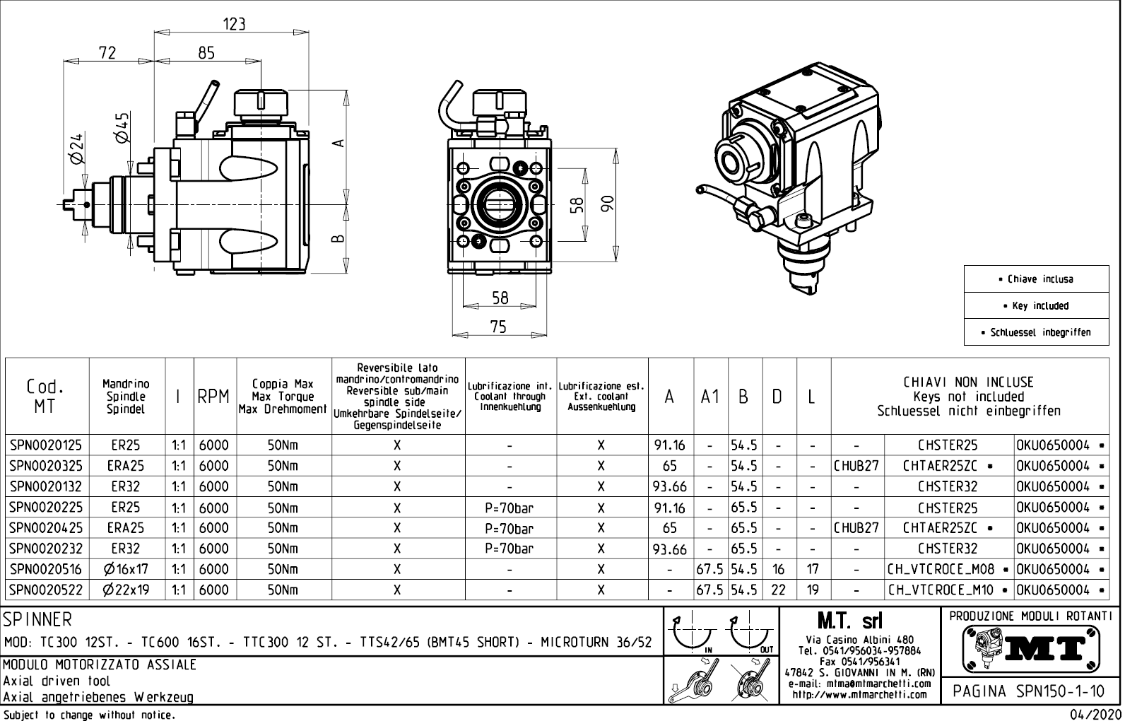 - Spinner - série TTS42/65 (BMT45 SHORT)