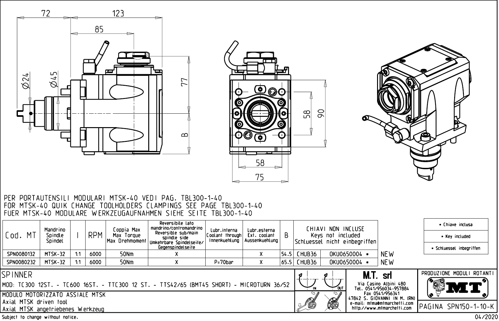 • Spinner - série TTS42/65 (BMT45 SHORT)