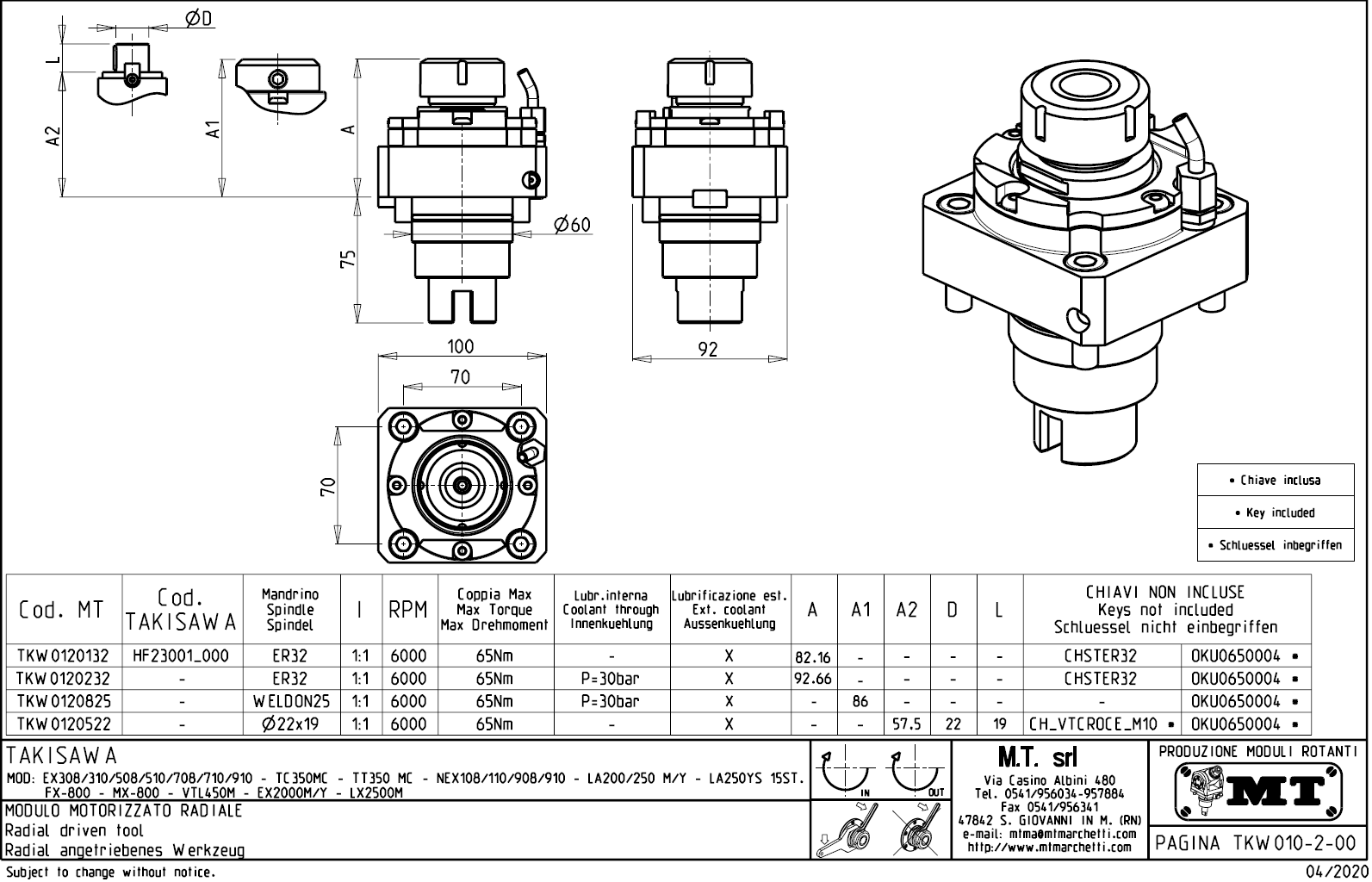 - Takisawa - série EX 2000 M / Y