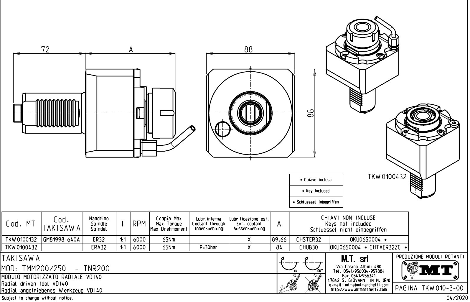 - Takisawa - série TMM 200 / 250