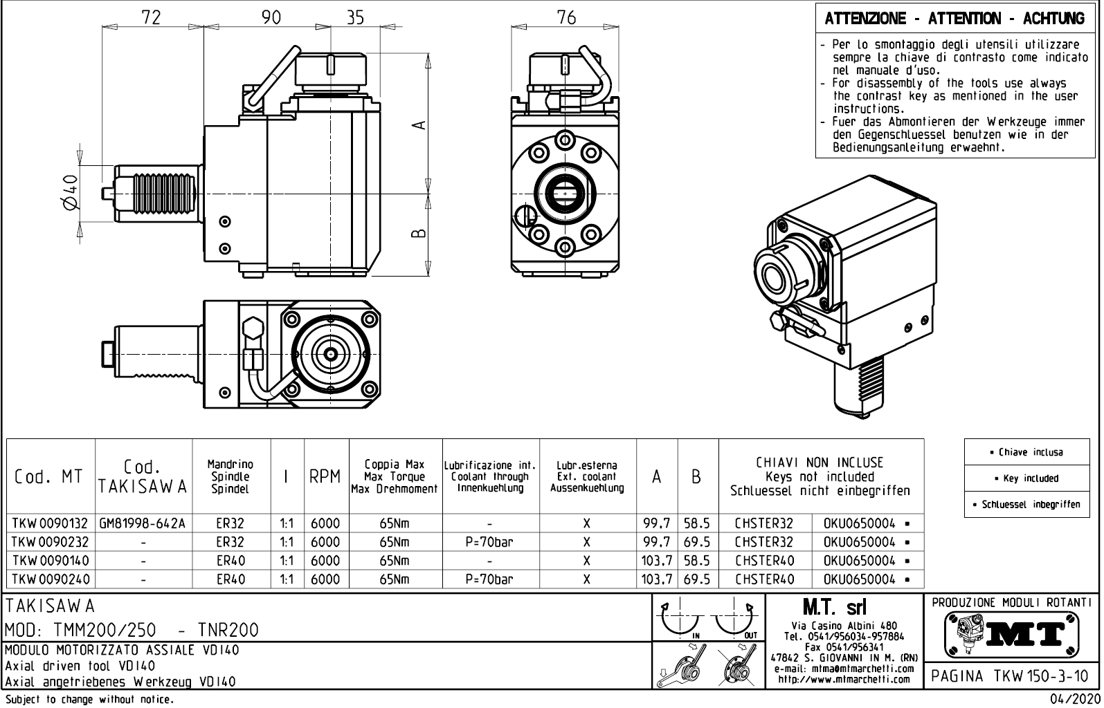 • Takisawa - série TMM 200 / 250