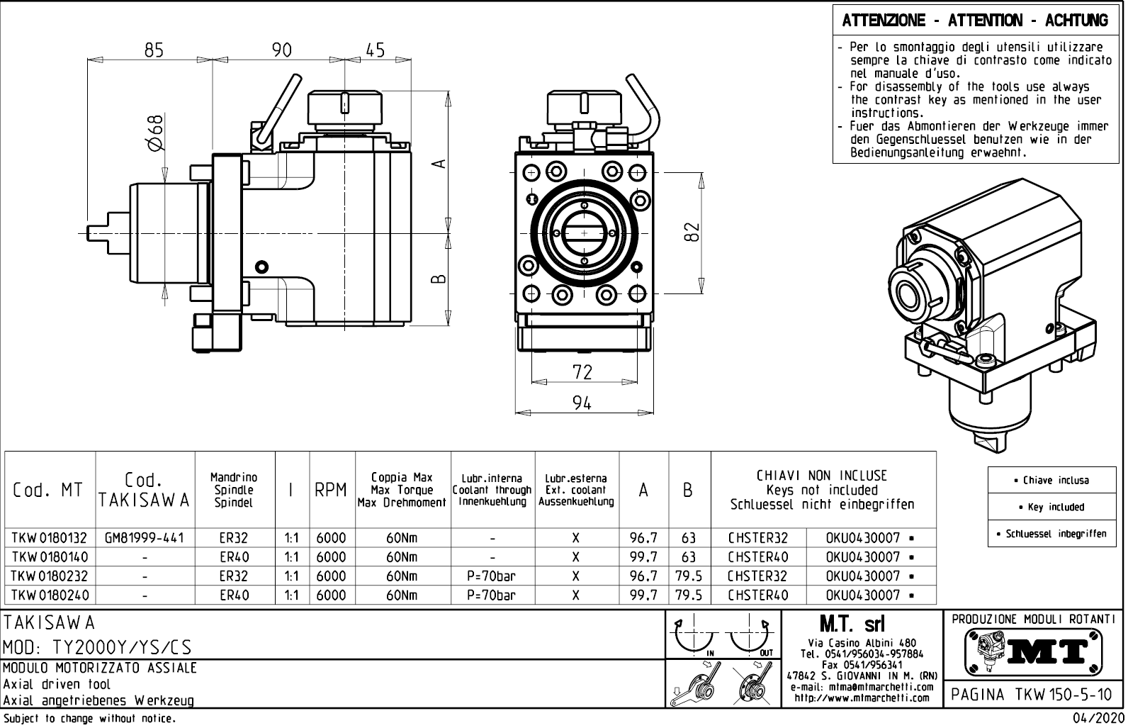 - Takisawa - série TY 2000 Y / YS / CS