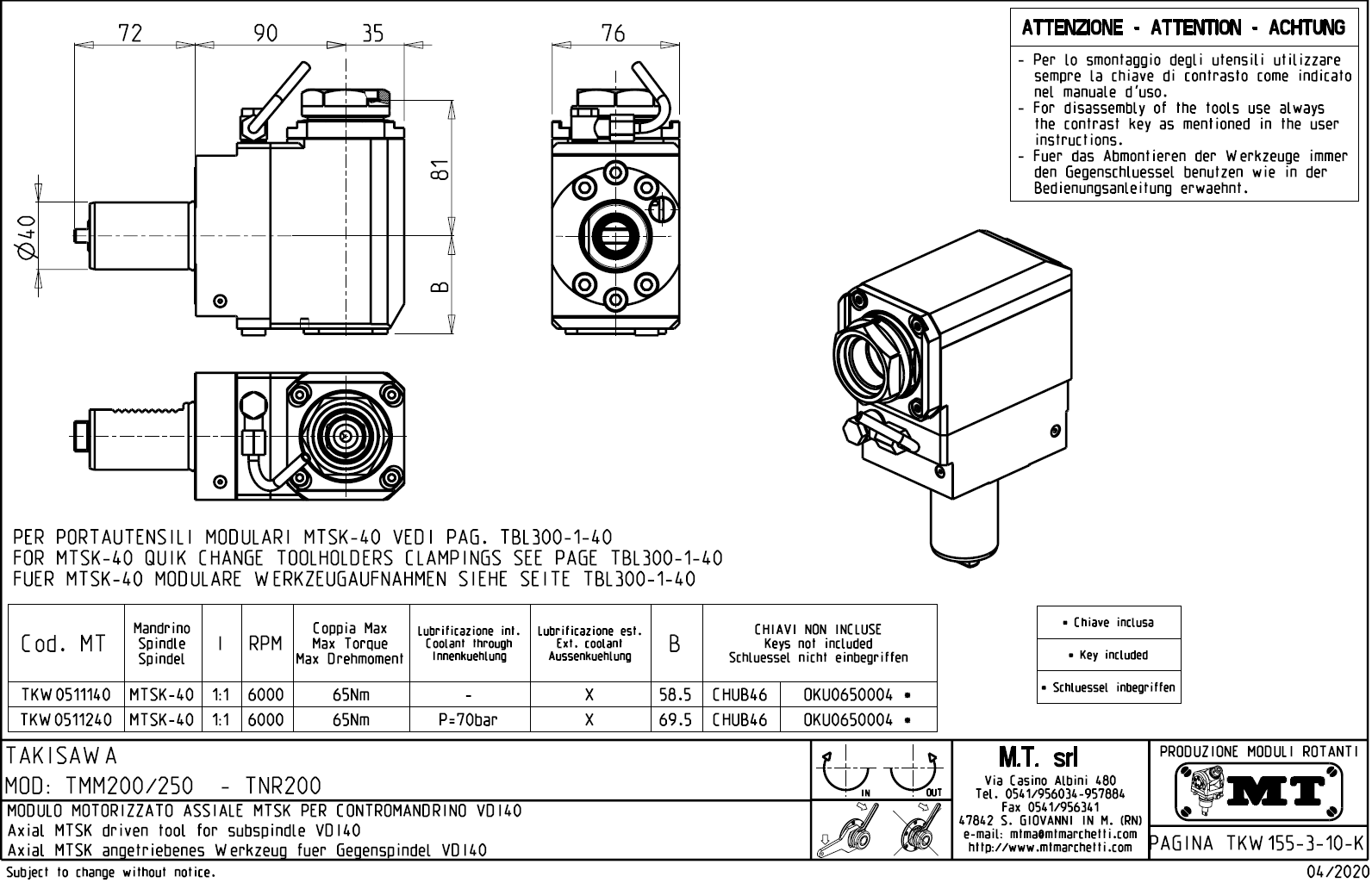• Takisawa - série TMM 200 / 250