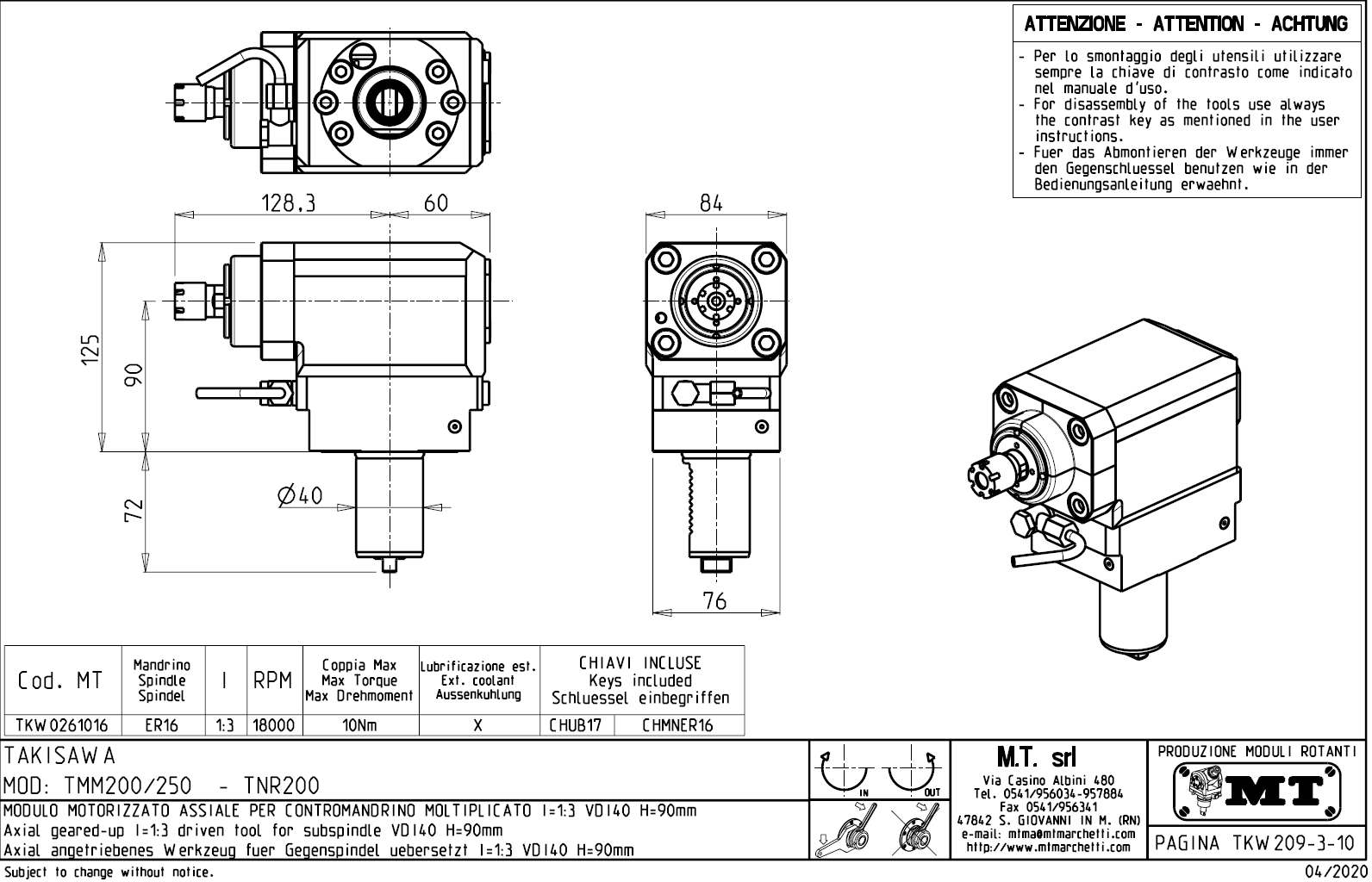 Axiální rotační držák nástrojů pro stroje s nástrojovou hlavou VDI40.