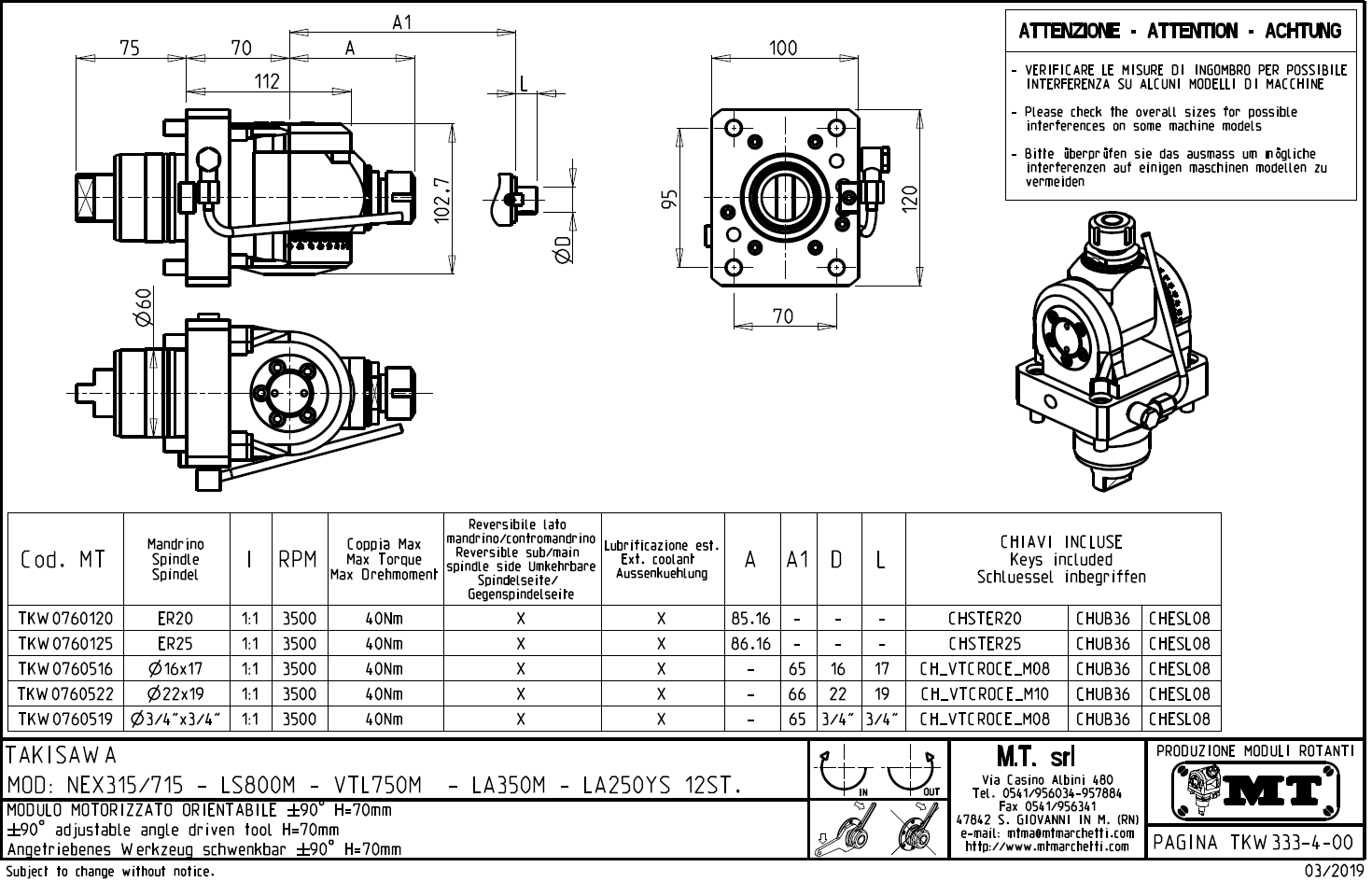 - Takisawa - série LA 250 YS s 12-ti polohovou hlavou