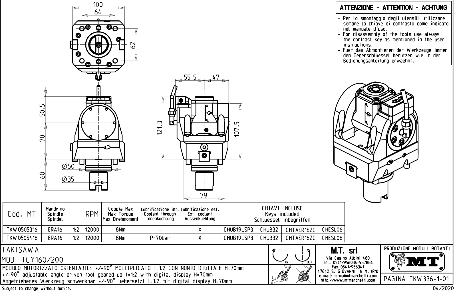 Úhlově nastavitelný rotační držák nástrojů pro stroje s nástrojovou hlavou BMT50.