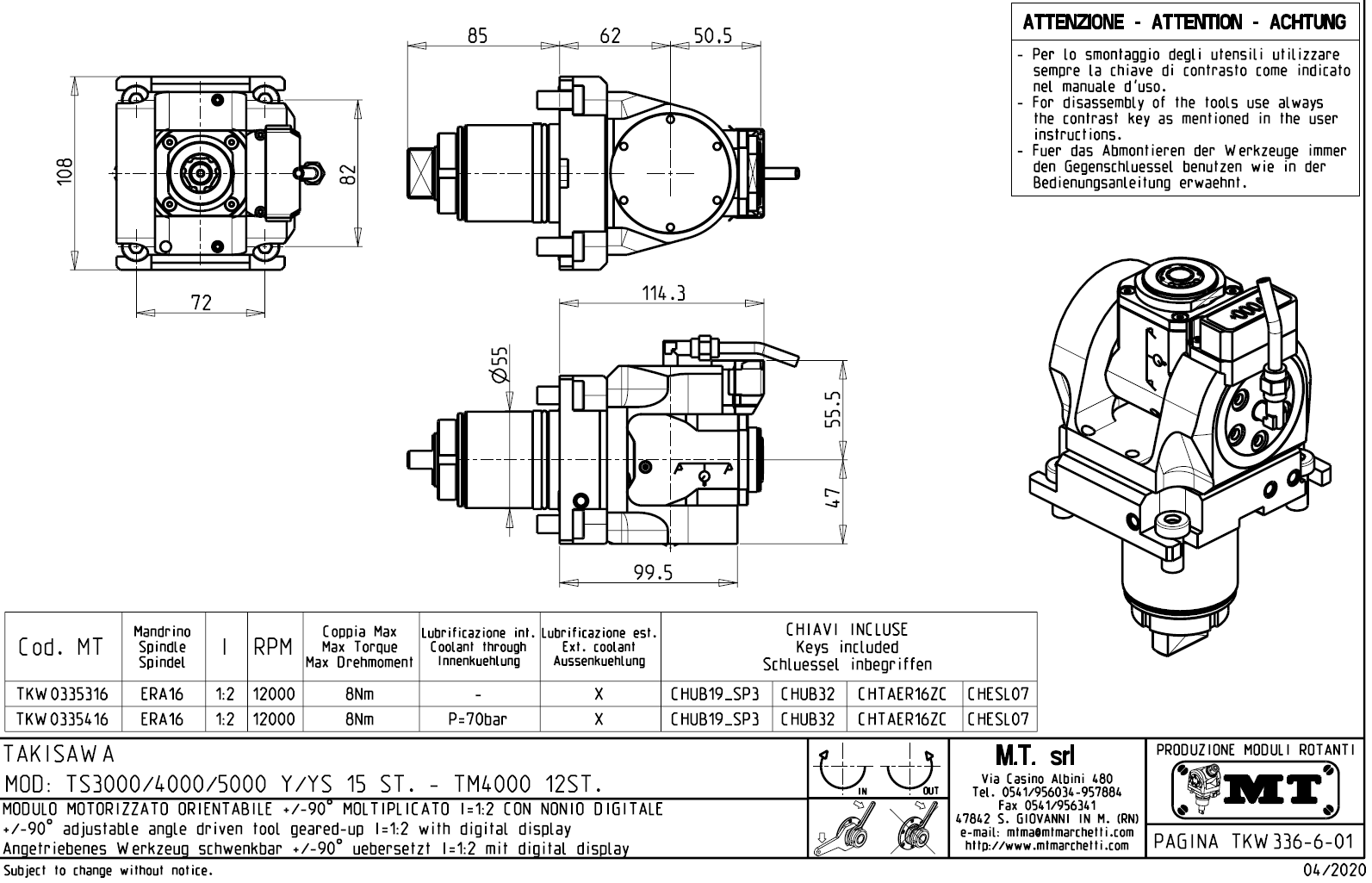 - Takisawa - série TM4000 s 12-ti polohovou hlavou