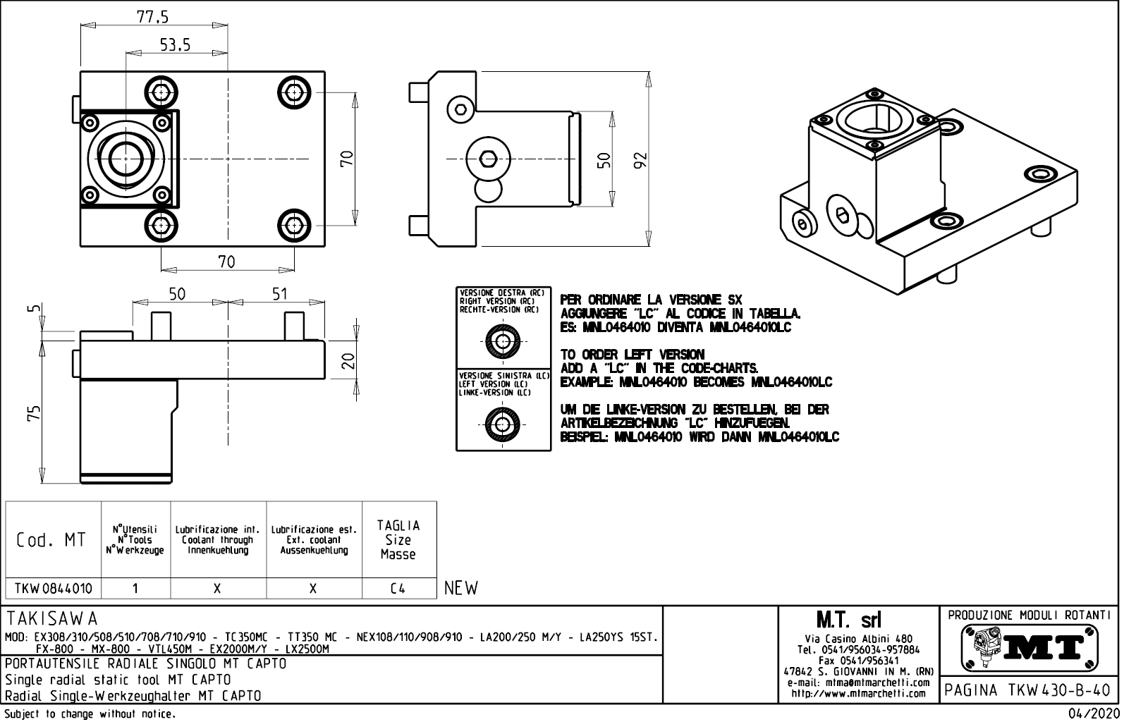 - Takisawa - série EX 308 / 310 / 508 / 510 / 708 / 710 / 910