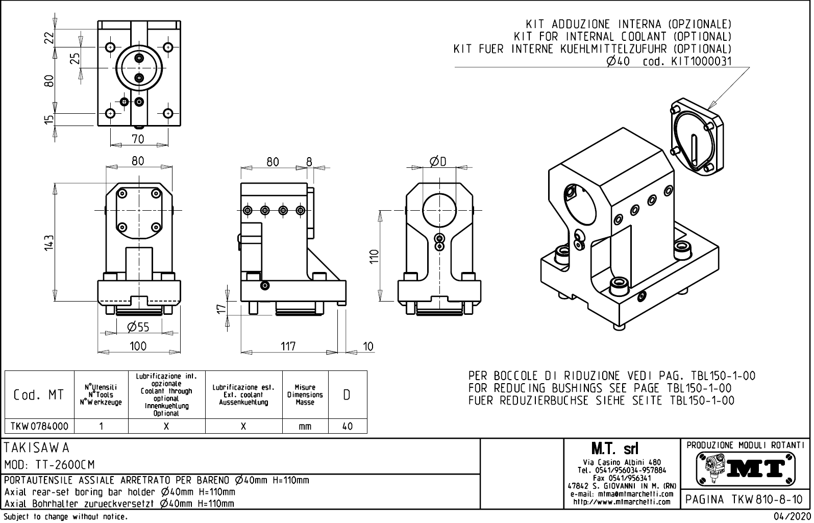 - pro použití vnitřního přívodu chladící kapaliny musí být použit zaslepovací kit, který není součástí standadní dodávky.
