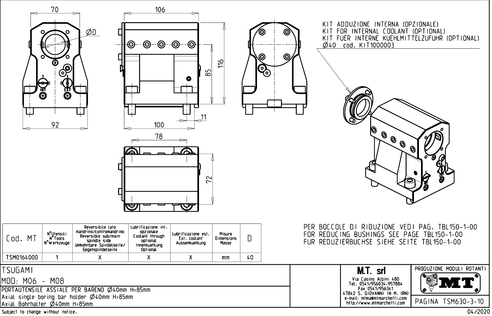 - pro použití vnitřního přívodu chladící kapaliny musí být použit zaslepovací kit, který není součástí standadní dodávky.